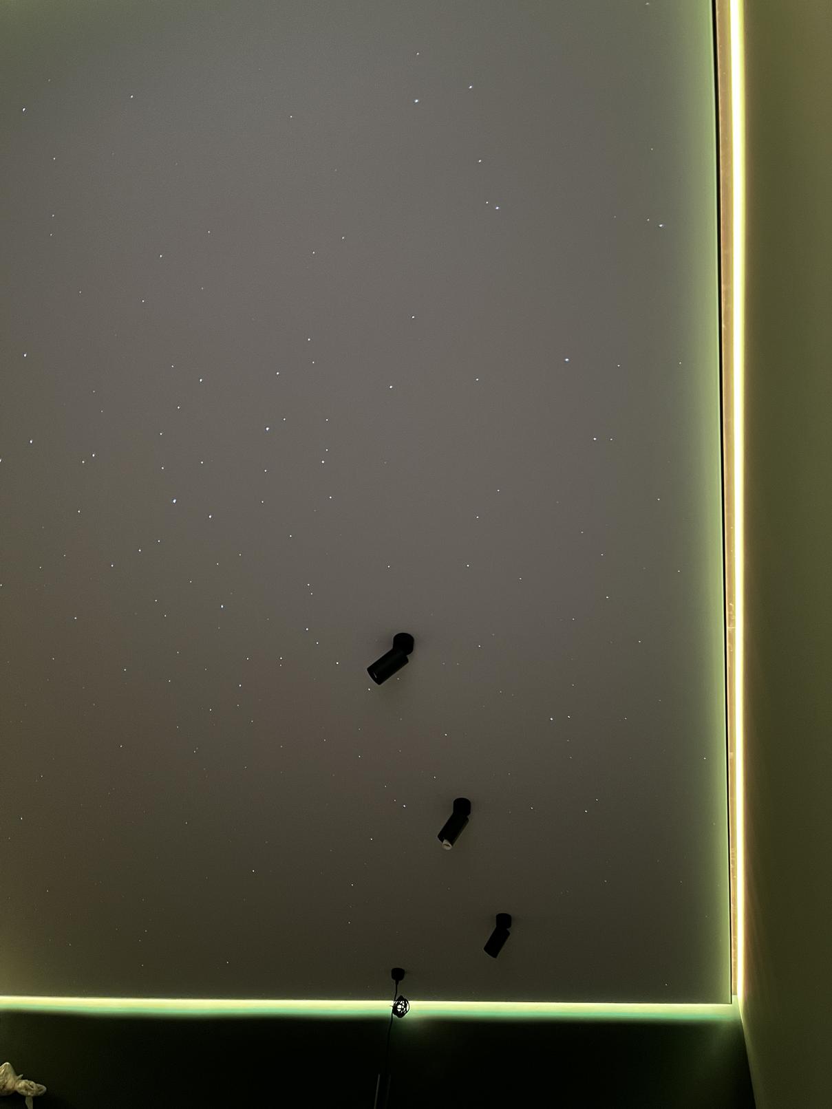 ✔️ По периметру установили парящий тканевый профиль М1 с RGB лентой DUMLIGHT.